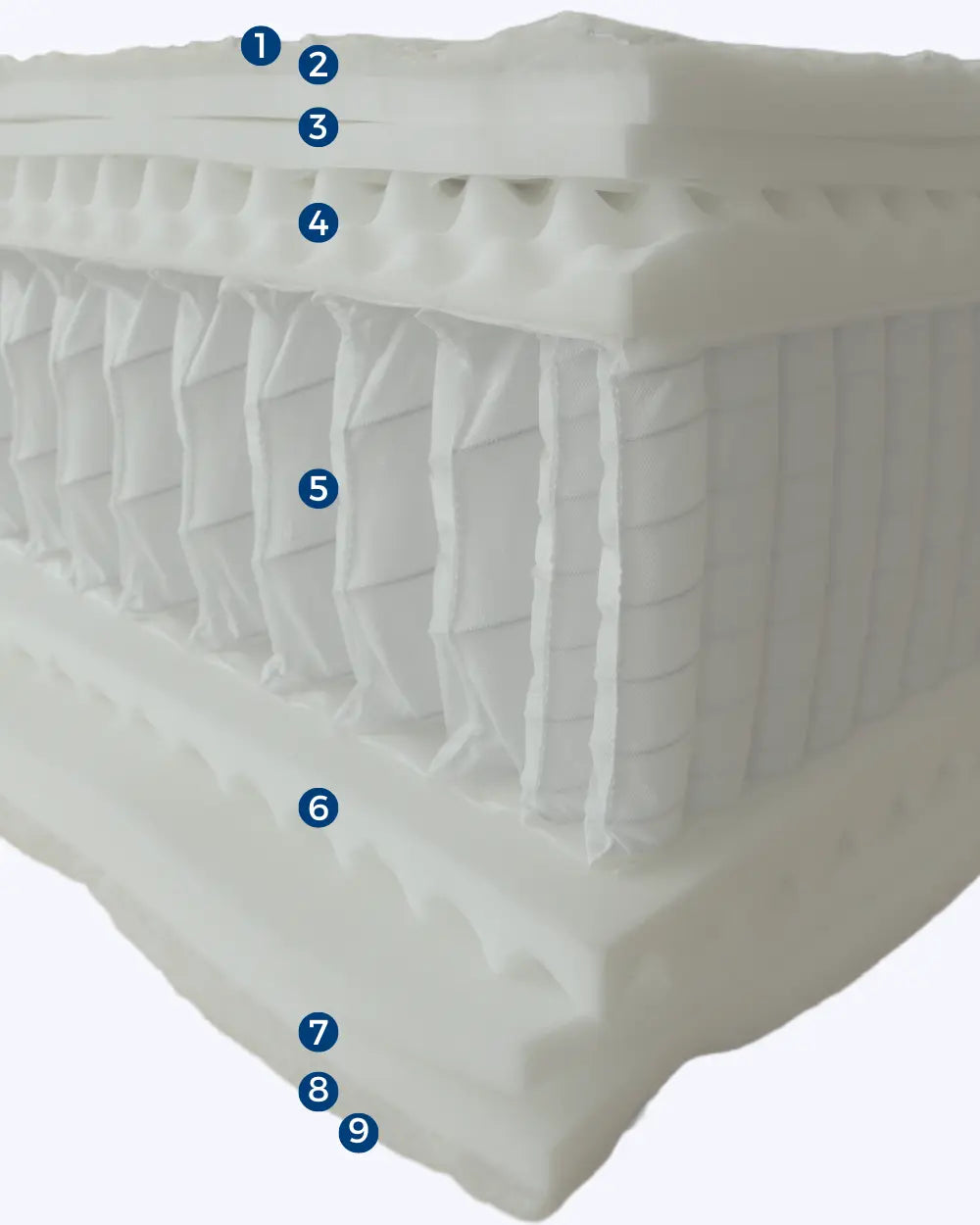 Our Classic Mattress is a meticulously crafted two-sided design, constructed using high-quality materials for both comfort and support. Here's a walkthrough of the construction, starting from the top layer down to the bottom, and remember, it's flippable so the bottom could also be your top: